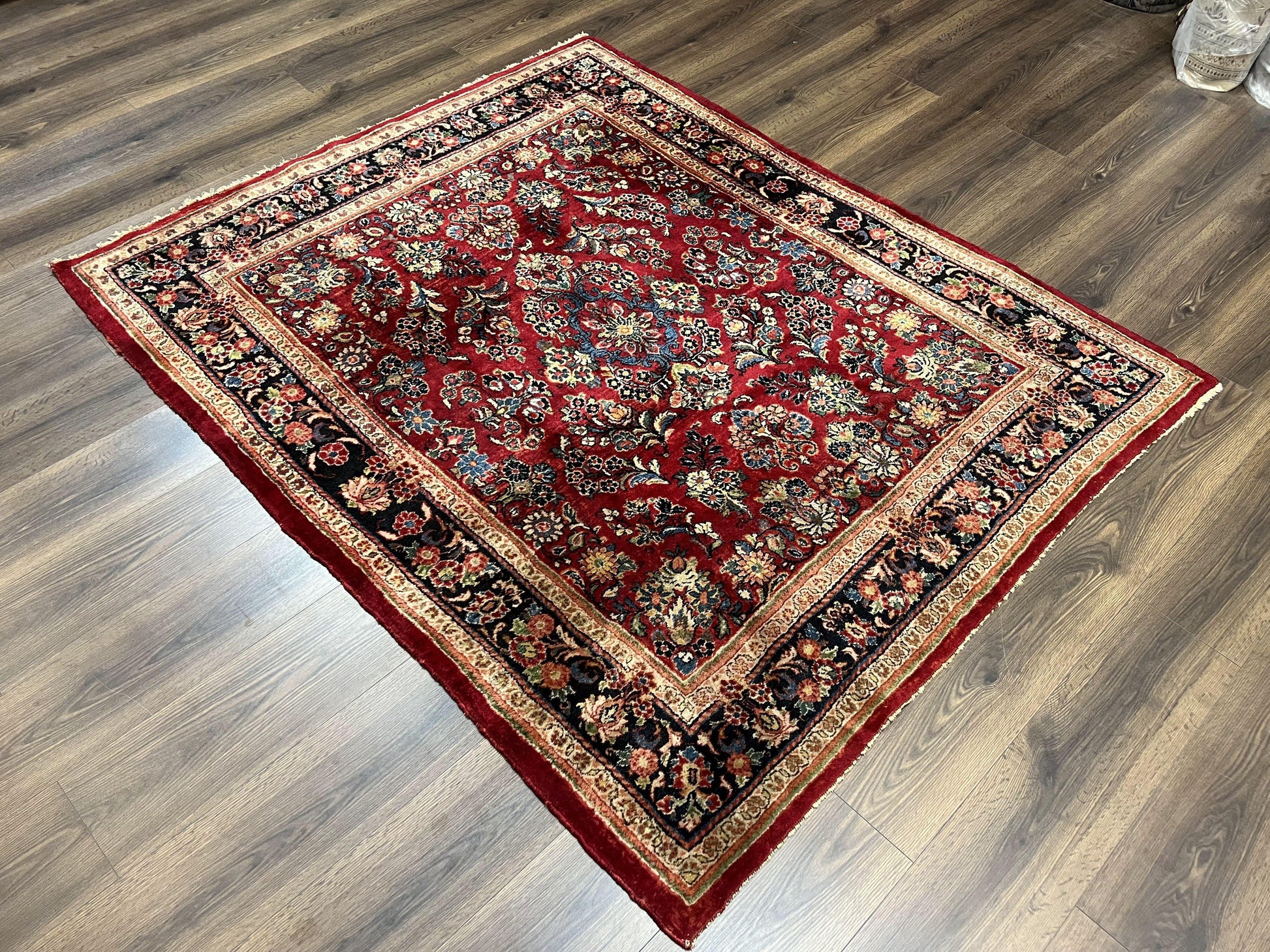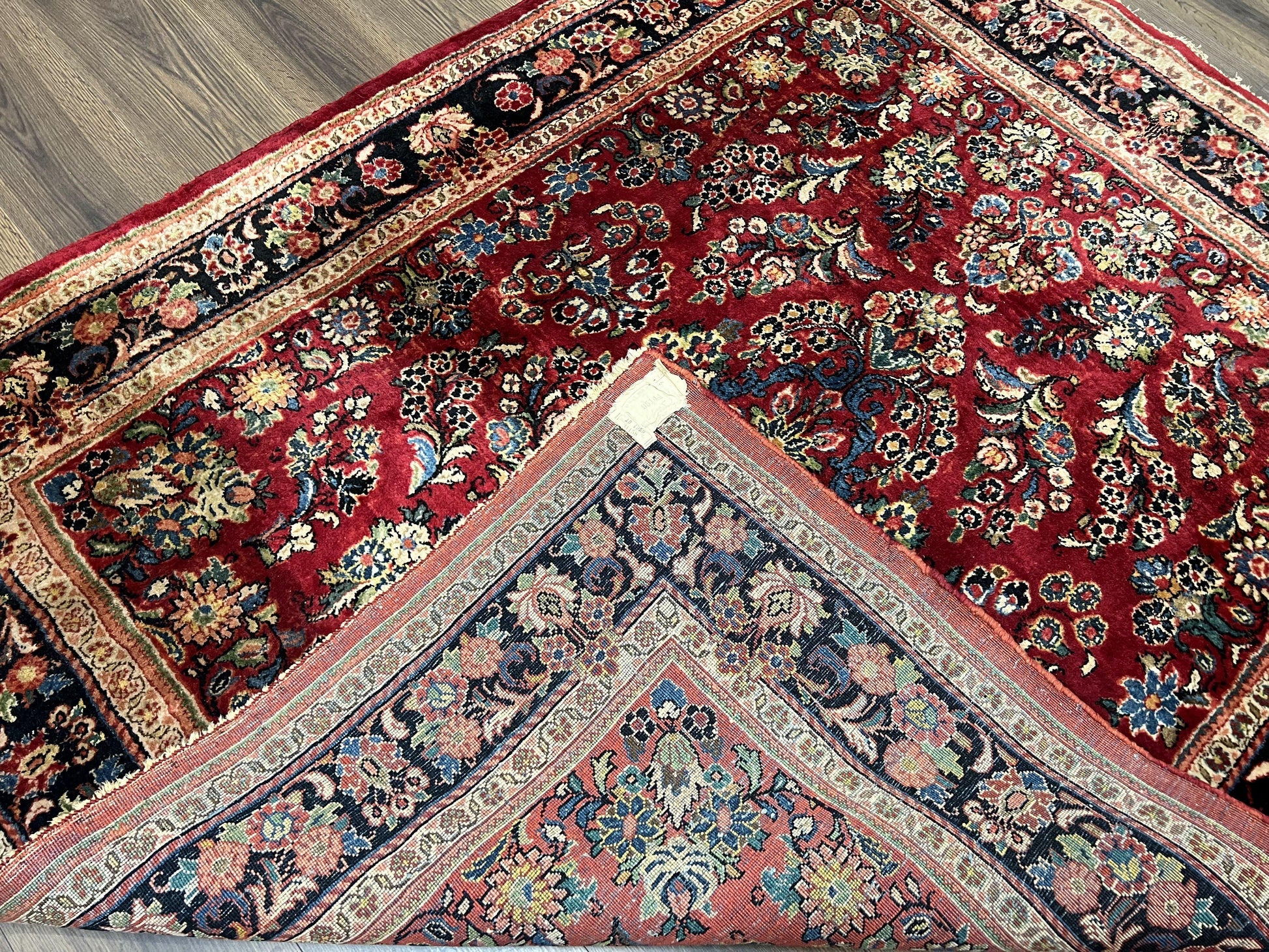 Rare Persian Rug Hand Knotted Wool 1920s Sarouk Antique Floral Allover Carpet