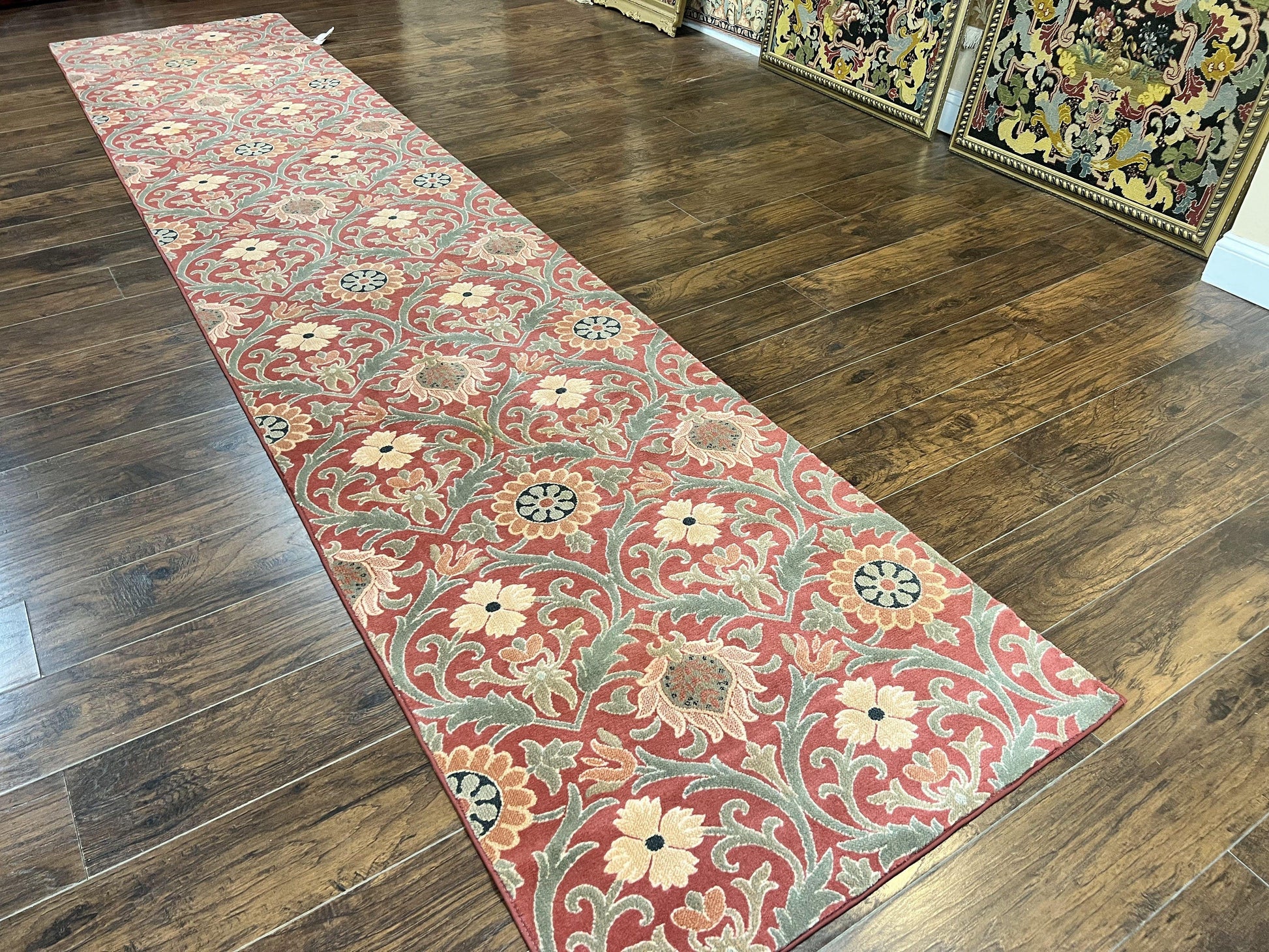 Runner Rug Floral Wool 3 x 14.7 Contemporary Power Loomed Hallway Rug