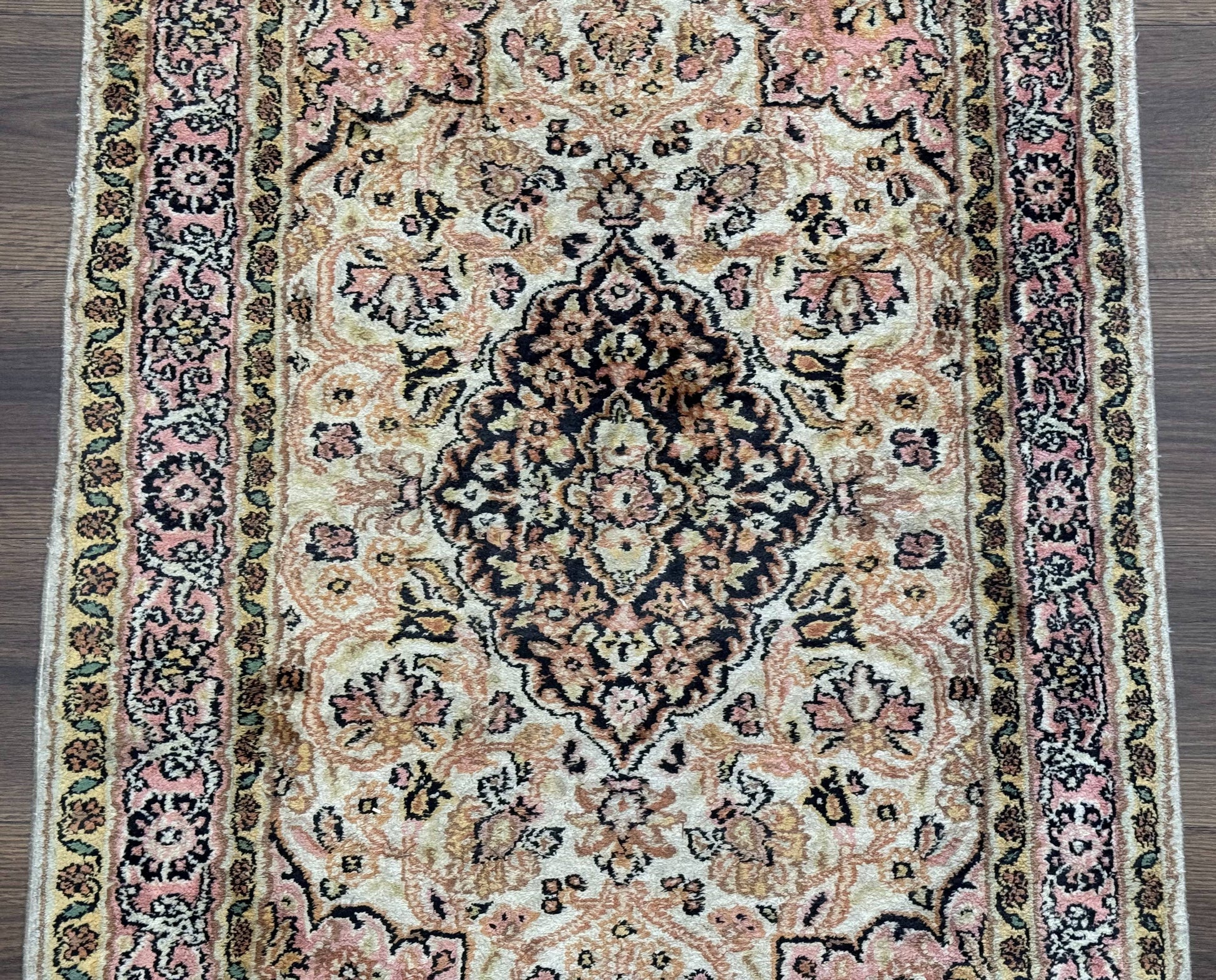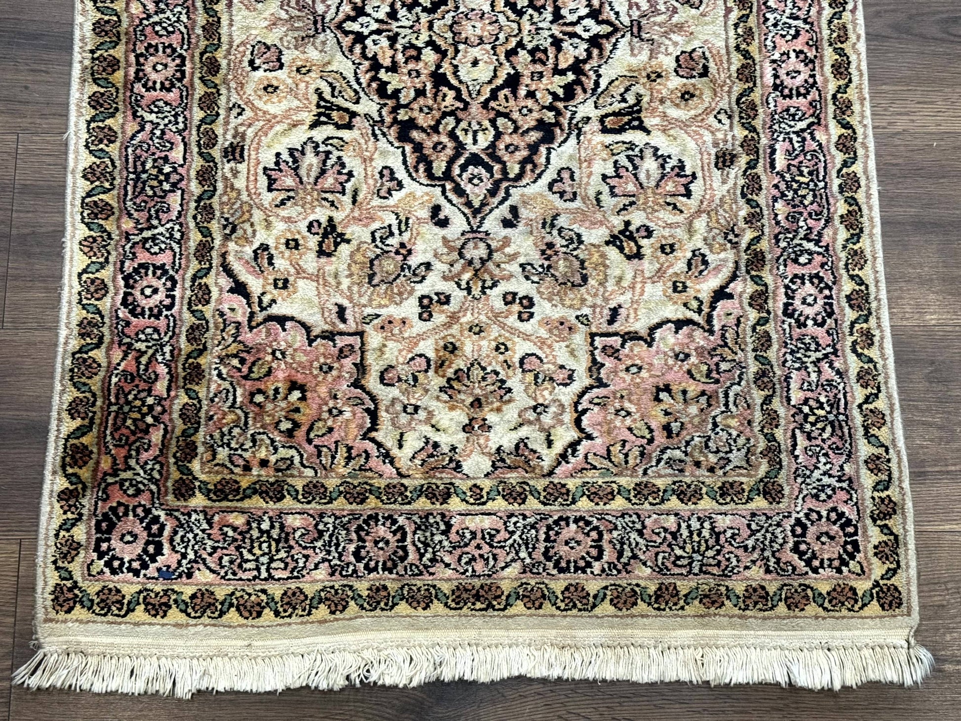 Silk Indian Kashmiri Runner Rug 2.7 X 9.8 Hand Knotted Floral Medallions