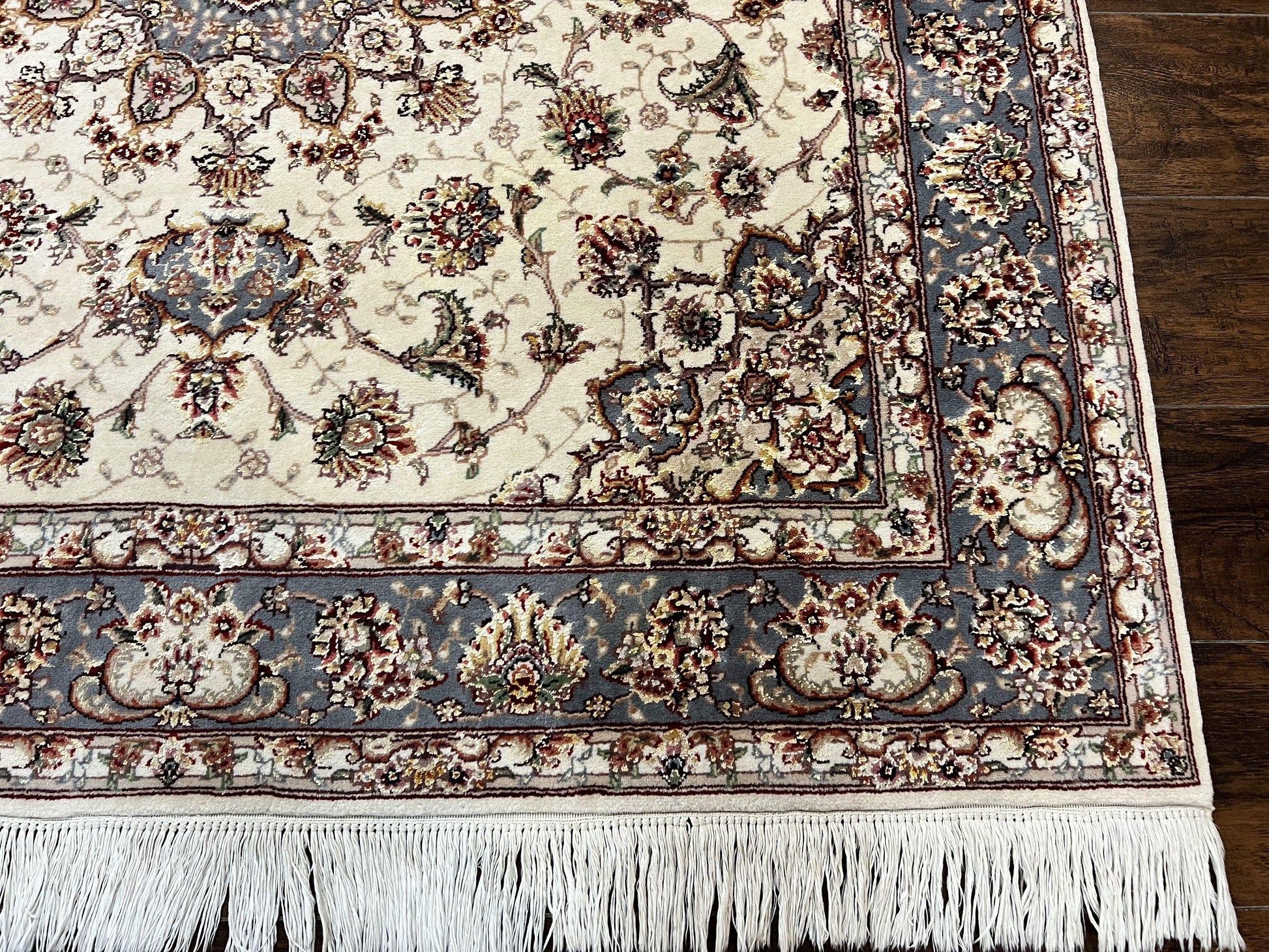 Sino Persian Square Rug 5x5 Hand Knotted Wool Silk Ivory Vintage Oriental Carpet