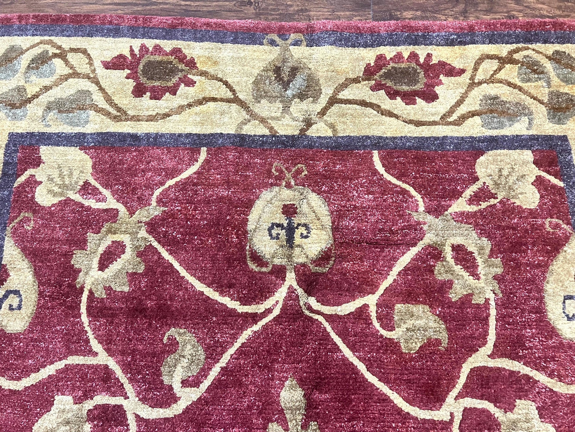 - Style: Tibetan Aubusson with a floral, traditional motif